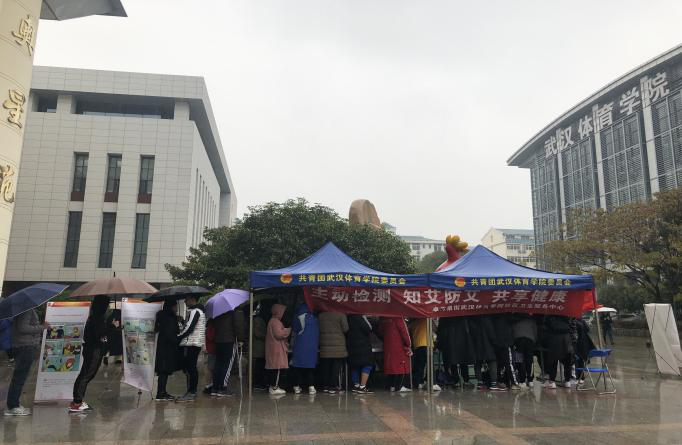 今年12月1日是第31个“世界艾滋病日”,我院医务科、公卫科联合校团委、学工处、校工会、宣传部在学生食堂前开阔地开展了以“主动监测知艾防艾 共享健康”为主题的艾滋病防治宣传活动,通过展板、横幅、微博、微信等工具在广大师生中对艾滋病防控知识进行了广泛宣传,并在自愿知情的情况下,为师生现场提供了艾滋病快检服务。