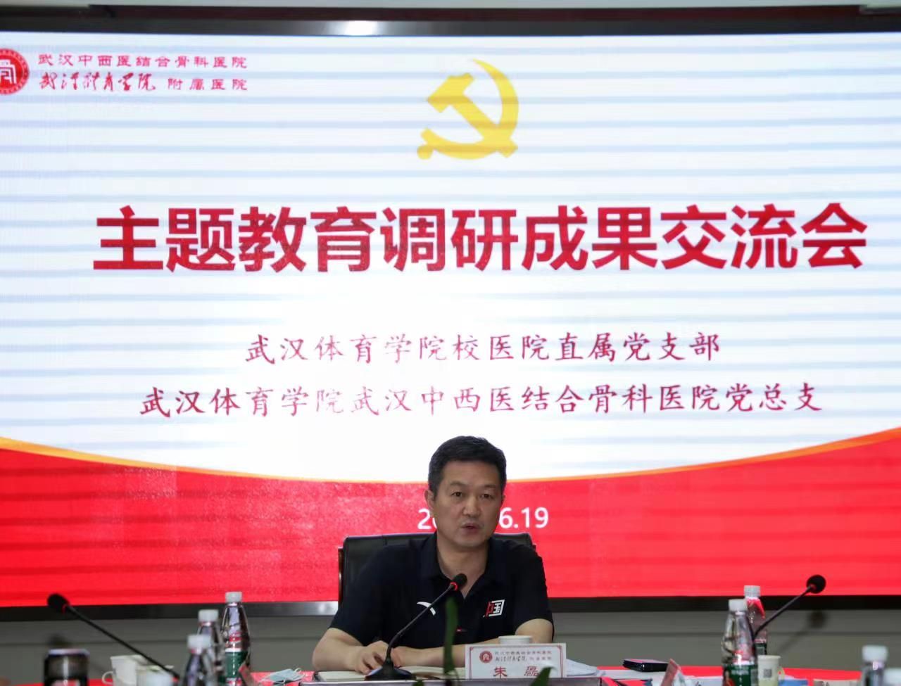 6月19日,校医院联合附属医院党总支召开领导班子主题教育调研成果交流会。武汉体育学院党委常委、副校长朱磊到会指导。附属医院党总支书记王晶主持会议。两院领导班子、校医院党总支委员、办公室主任简端及附属医院职能部门长出席会议。