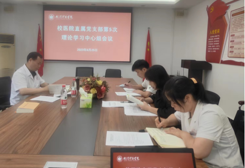 6月25日下午,校医院直属党支部在医院会议室召开理论学习中心组会议。校医院全体支委参加会议,会议由支部书记夏数数主持。