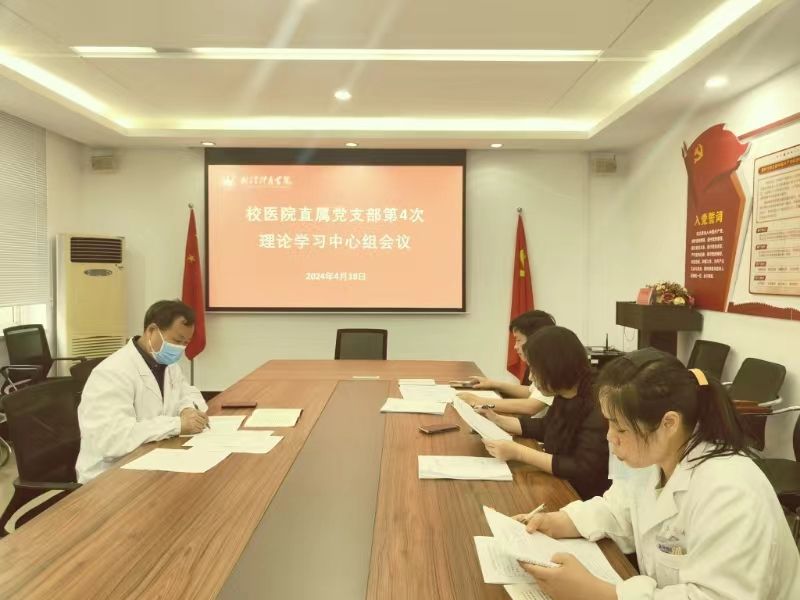 4月18日下午,校医院召开党支部理论学习中心组2024年第4次集中学习会议,研学《中国共产党简史》、习近平总书记重要文章和近期重要讲话精神、中央重要文件精神。党支部书记夏数数主持会议并讲话。党支部委员参加学习。